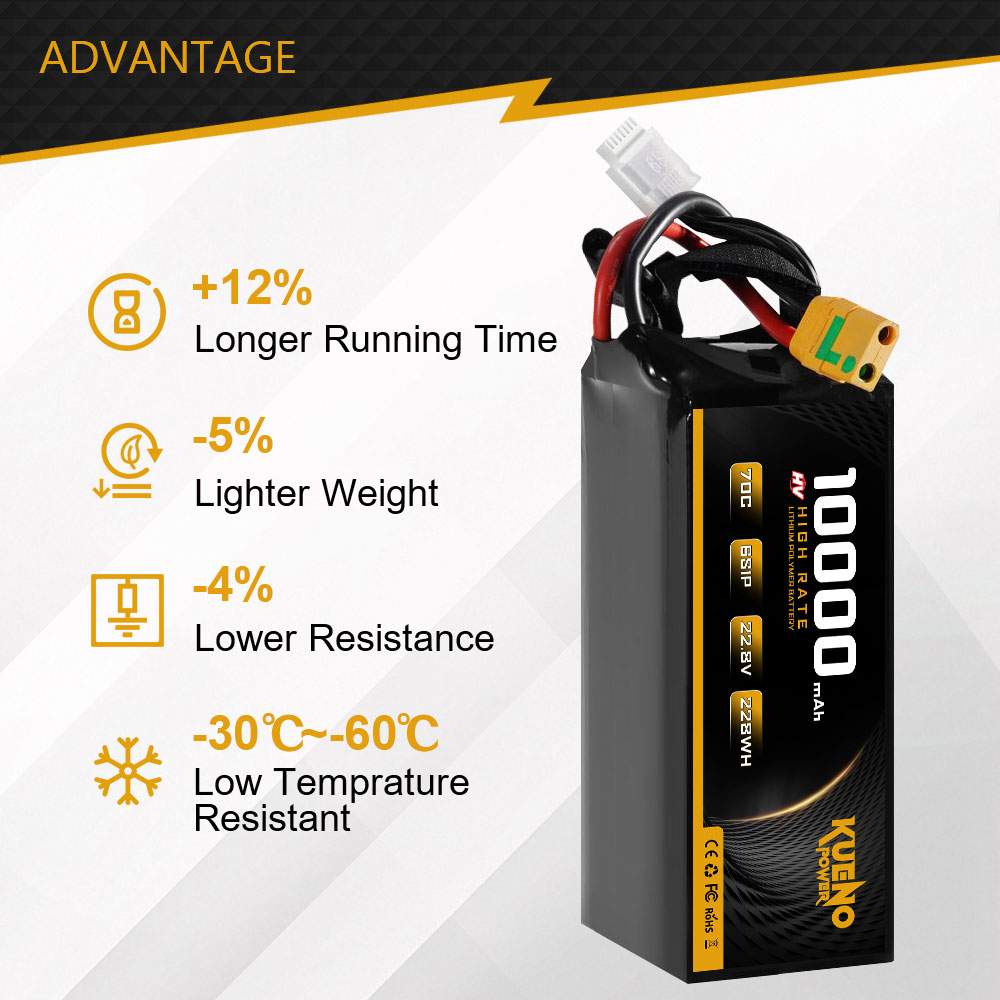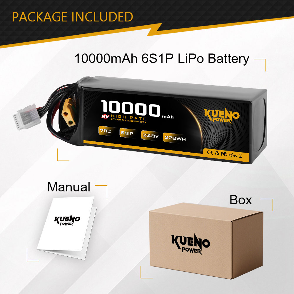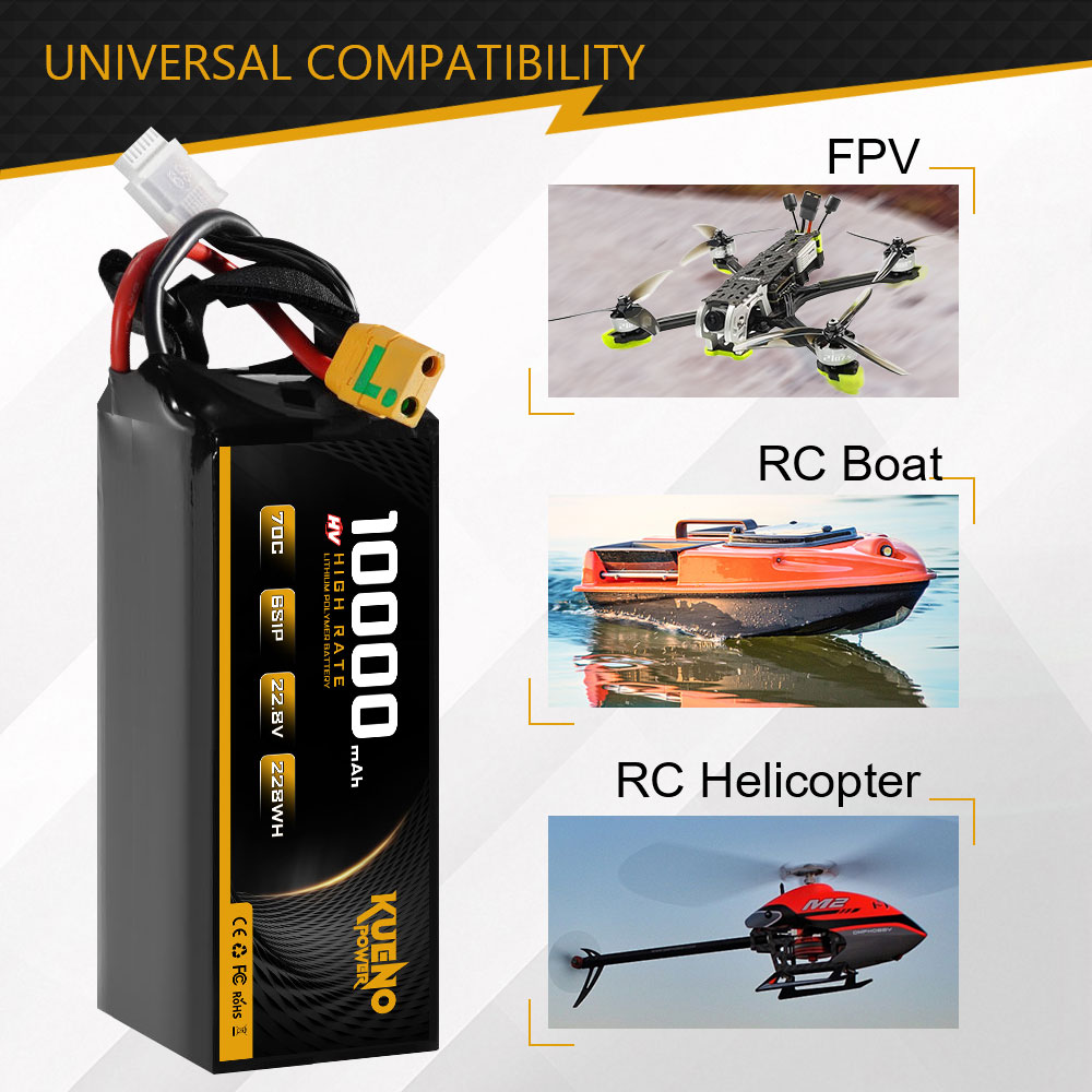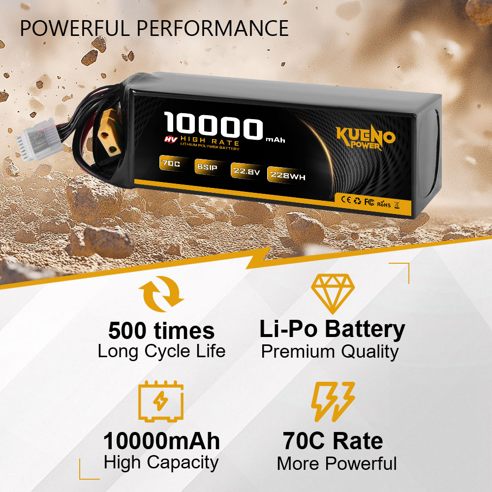 High-Voltage 22.8V 10000mAh 6S1P 70C LiPo Battery for FPV Drone RC Helicopter
