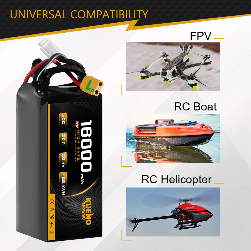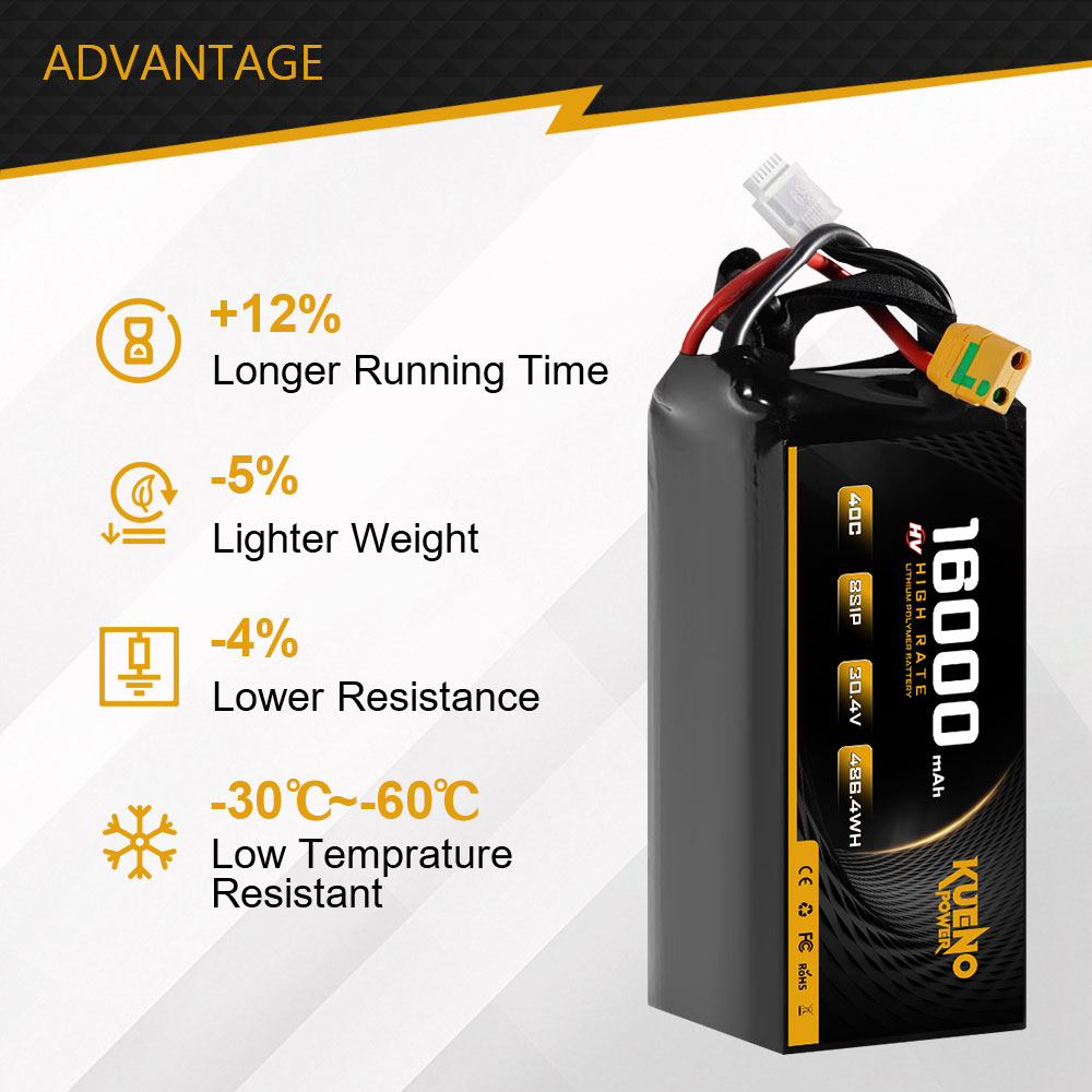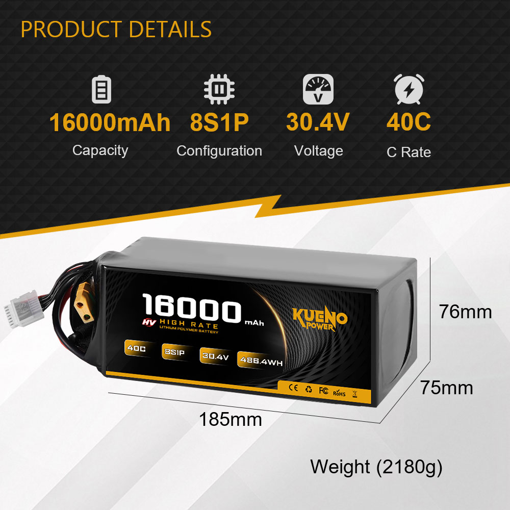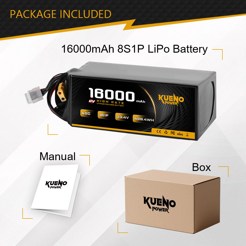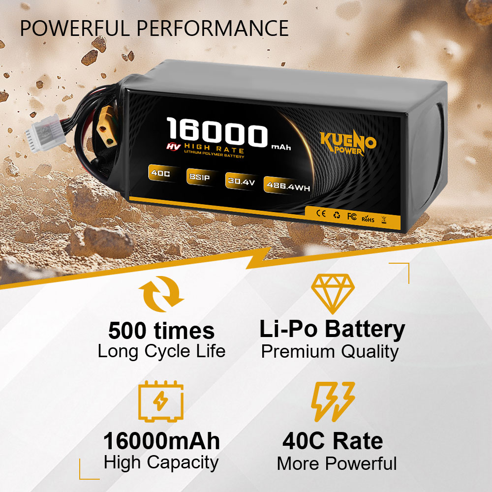 High-Voltage 30.4V 16000mAh 8S1P 40C LiPo Battery for FPV Drone RC Helicopter